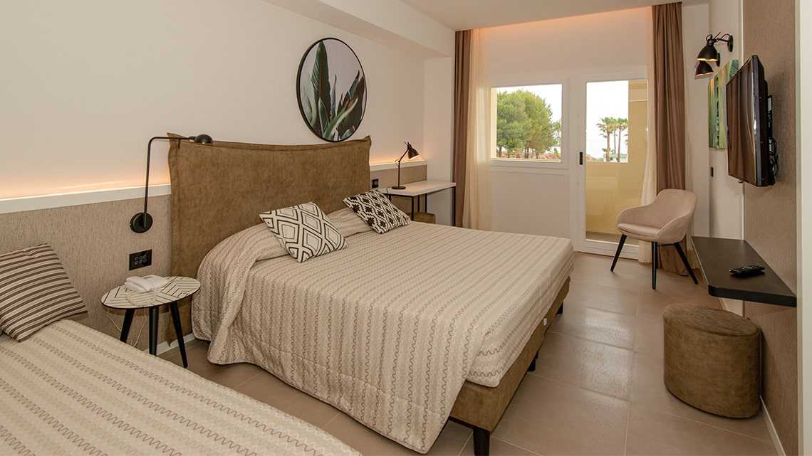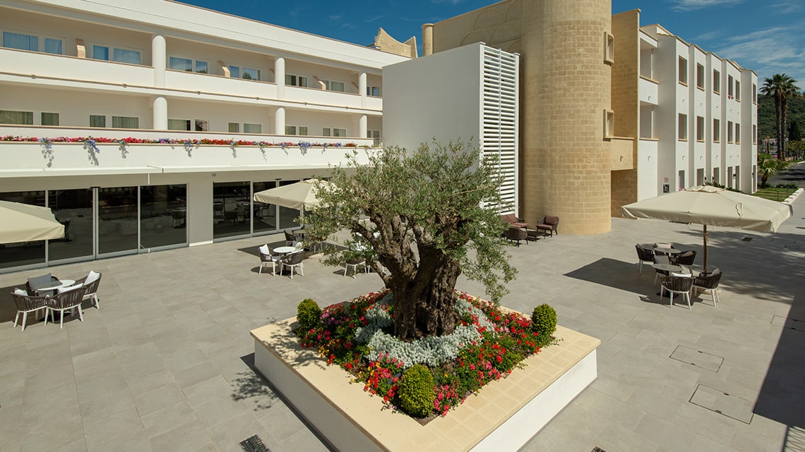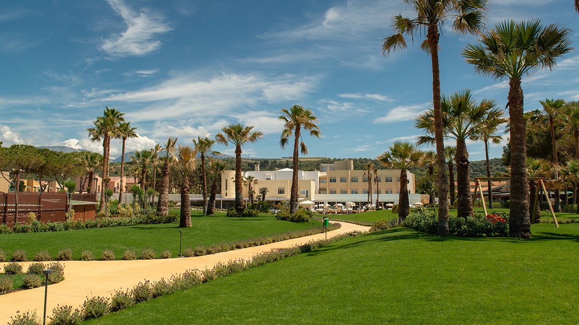 Costruito nel tipico stile mediterraneo, è distribuito su tre piani a pochi metri dal mare che lambisce la rigogliosa vegetazione mediterranea. Le 149 camere totalmente rinnovate, dispongono di servizi privati con doccia ed asciugacapelli, aria condizionata, telefono, mini-frigo, TV e Wi.Fi.